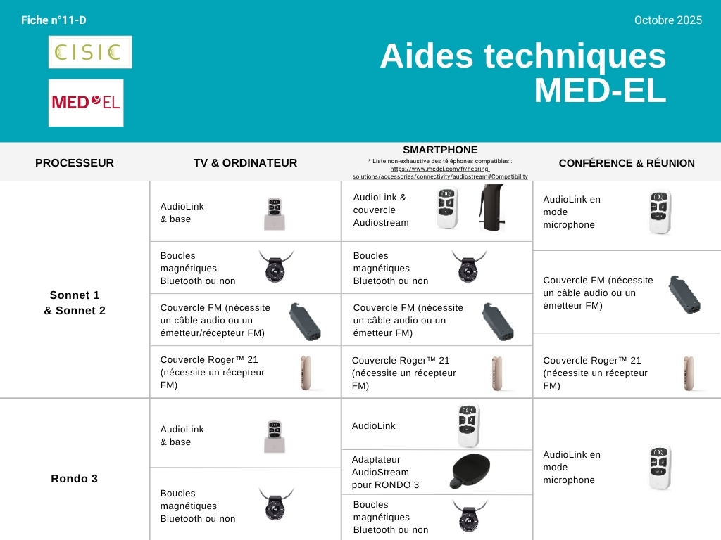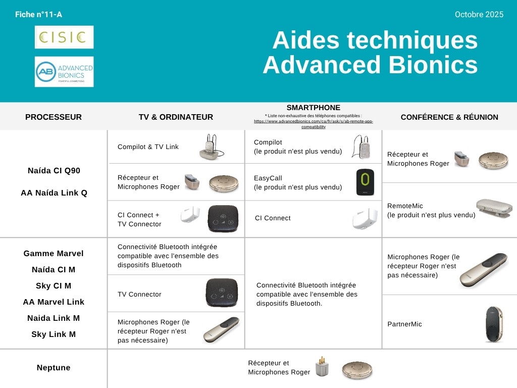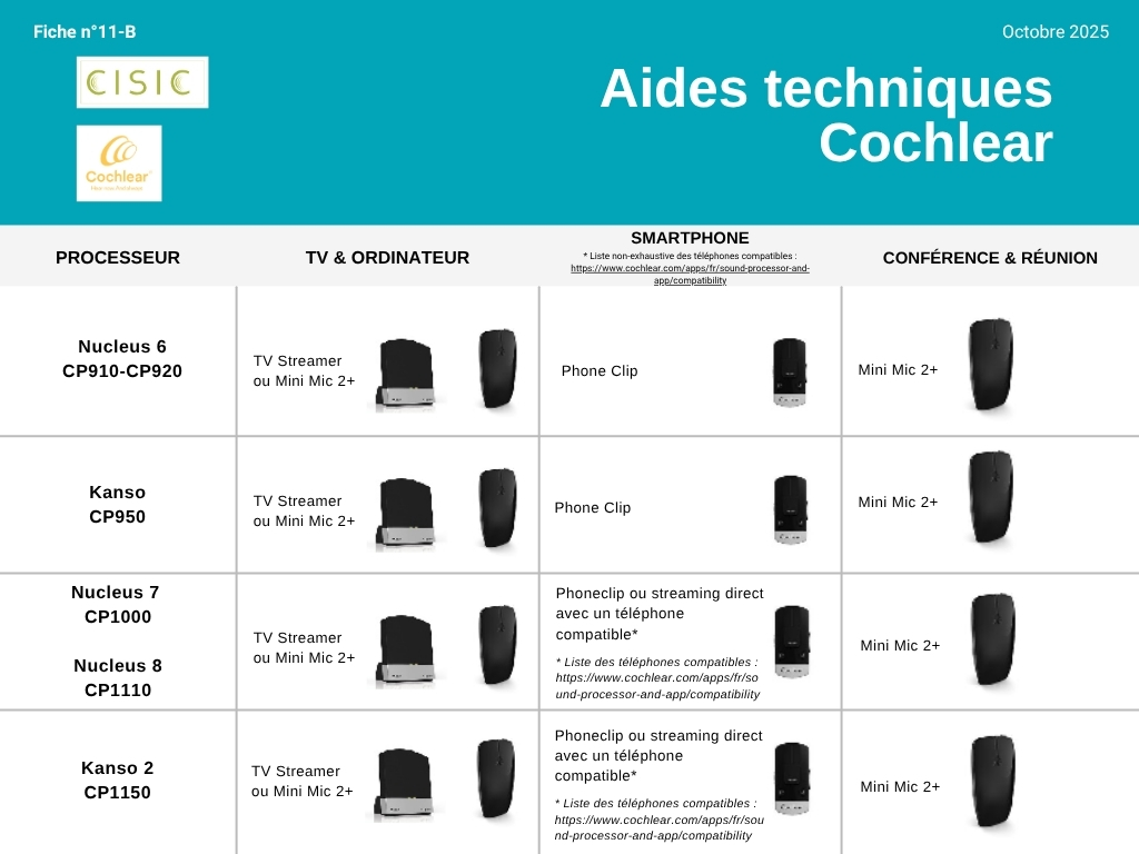 Aujourd'hui, tous les fabricants proposent des aides techniques pour chaque modèle d'implant afin de vous aider pour mieux entendre lorsque vous téléphonez, regardez la télévision ou un ordinateur, ou assistez à une réunion ou à une conférence.