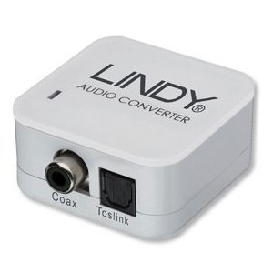 - le second type d'adaptateur, plus difficile à trouver, permet de connecter un accessoire audio analogique à la sortie SP/DIF optique du téléviseur (prise fibre optique Toslink ou "micro-Toslink" selon les téléviseurs)