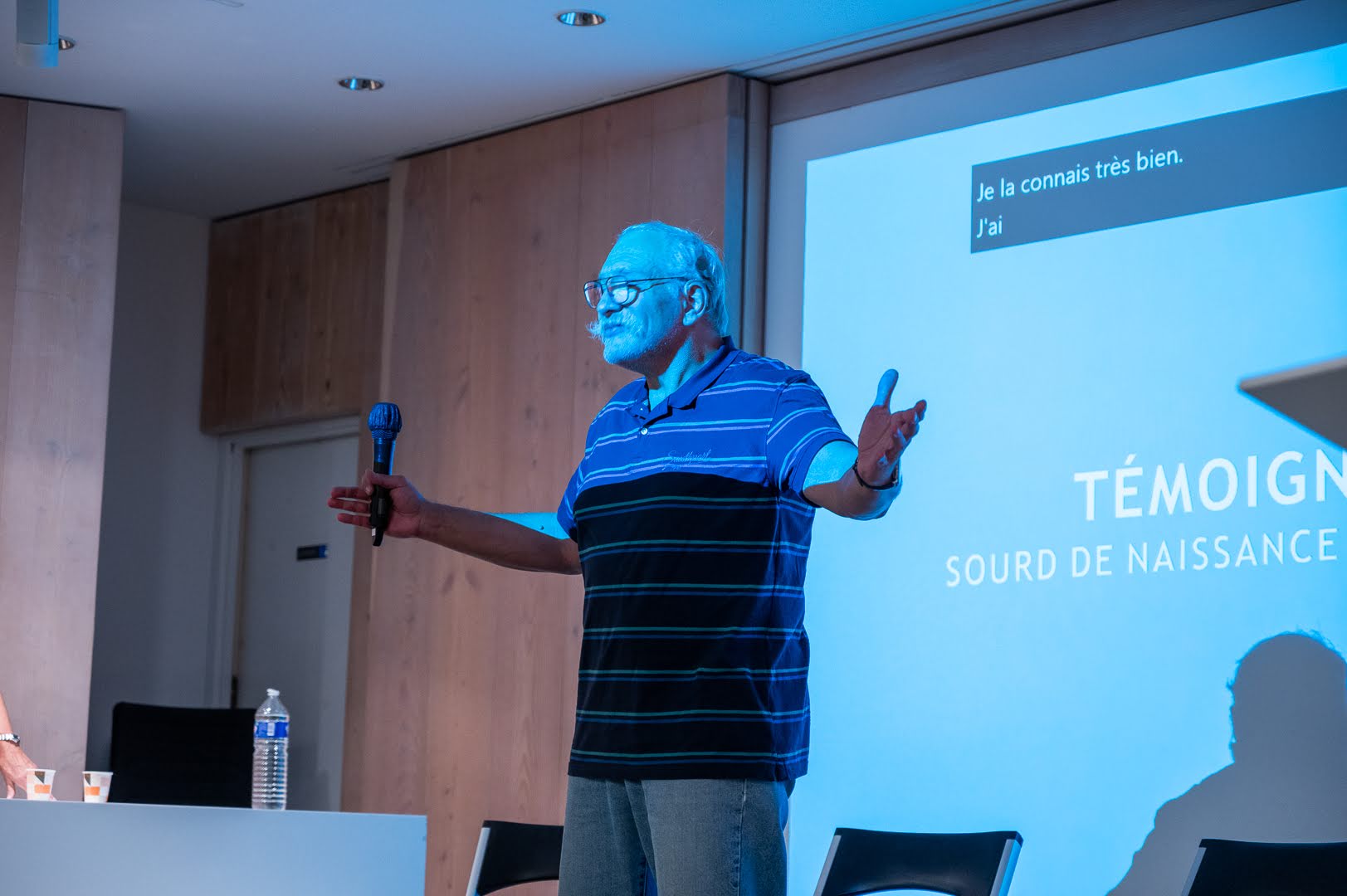 Durant cette journée, Olivier, qui fête ses 20 ans d'implantation, nous a livré son témoignage sur l'implantation tardive lorsque l'on est sourd de naissance.